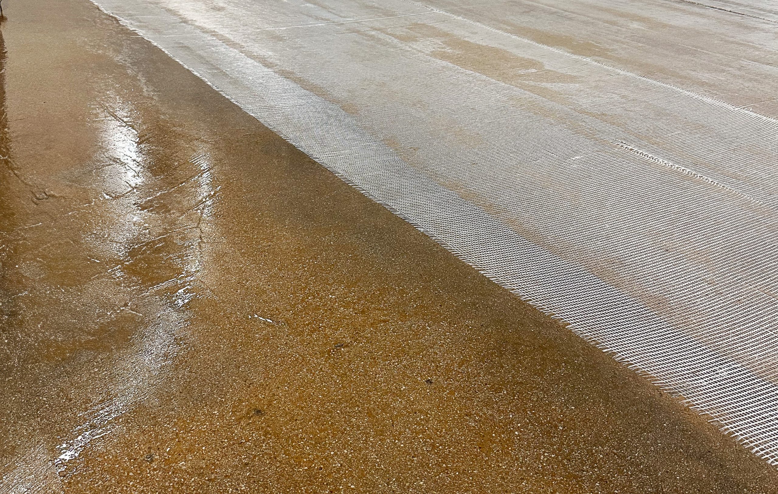 Terrazzo uygulamalarında, yüzeyin dayanıklılığını artırmak ve uzun ömürlü bir sistem oluşturmak için öncelikle özel elyaf katmanları serilir (60–200 gr/m² aralığında). Bu katmanlar, yalnızca çatlak oluşumunu engellemekle kalmaz; beton altyapıdan gelebilecek zayıf noktaların yüzeye yansımasını da önler. Adeta görünmeyen bir zırh gibi davranarak terrazzo ile alt yapı arasında güçlü bir kalkan oluşturur. Elyaf laminasyonunun ardından uygulanan özel kuvvetli astar ise, bu koruyucu sistemi tamamlar. Astar, malzemenin yüzeye tam olarak yapışmasını sağlar; pürüzsüzlüğü artırır ve yük taşıma kapasitesini güçlendirir. Böylece, yüzey ile altyapı arasında sağlam bir köprü kurularak hem teknik dayanım hem de uzun ömürlü bir performans elde edilir.